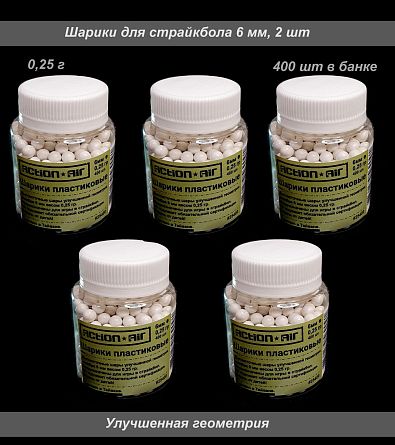 Шарики для страйкбола отлично подойдут как для детского пистолета, так и для страйкбольного привода калибра 6 мм. Количество шаров в банке - 400 шт. Страйкбольные шары не имеют следов литья, обладают отличной полировкой, что исключает заминание внутри ствола и обеспечивает повышенную точность. Размер шара 6 мм, вес 0,25 г. ВНИМАНИЕ! Несмотря на то, что пули - пластиковые, всегда используйте защиту глаз. Шары для страйкбола отличаются весом - более легкие экономичнее, с более высокой скоростью полета на коротких дистанциях, идеальны для ограниченных пространств. Более тяжелые пульки лучше преодолевают мелкие преграды (веточки, листва), более стабильный полет, меньше влияние внешних факторов на траекторию полета (ветер), повышается дальность стрельбы.