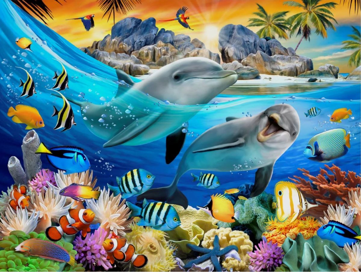 Пазлы с дельфинами излучают позитив, наверняка заставят улыбнуться даже самого сурового любителя пазлов. Мозаики с дельфинами очень красочные и яркие. В сочетании с безукоризненной водной гладью и разноцветными рыбками изображенные дельфины смотрятся просто сказочно!