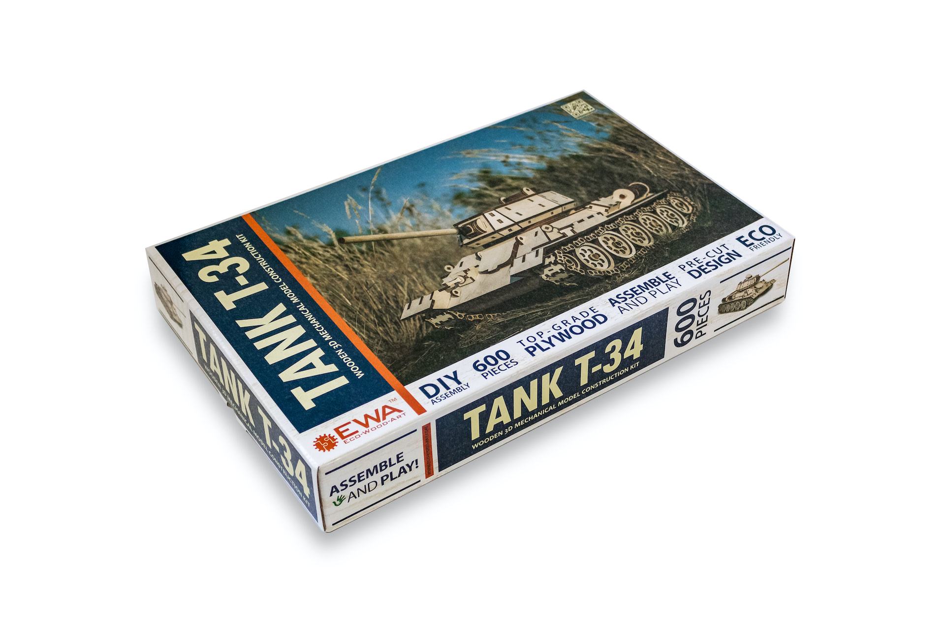 Танк Т-34 механическая 3D-модель легендарного советского танка предназначенная для самостоятельной сборки. Эффектное сходство с оригиналом, поворотная башня, подвижный ствол, открывающиеся люки, подвижные гусеницы, экологически чистые материалы и качественная прорисовка элементов, доставят максимум удовольствия от сборки и радость от использования как детям, так и взрослым.