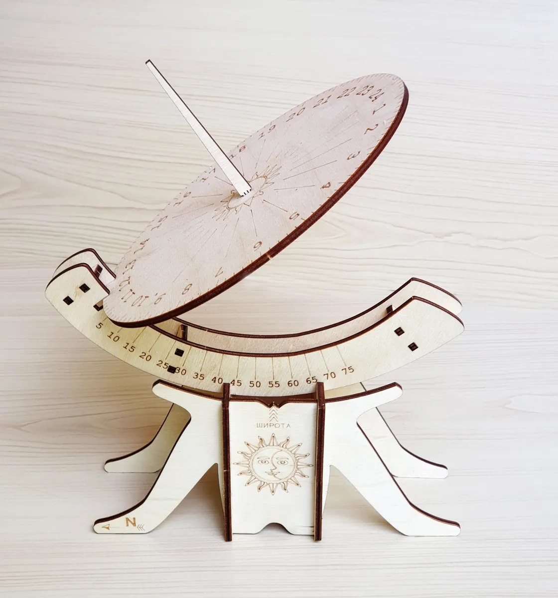 Деревянный конструктор солнечные часы - это не только приятное время провождение, но и возможность получить новые знания. Конструктор выполнен из экологически чистого материала, фанеры, легко собирается, а понятная инструкция позволит легко настроить на точное время. Обратите внимание, солнечные часы можно использовать с 22 марта по 22 сентября. Фанеру можно покрасить любыми красками по дереву или покрыть лаком. Сборная модель Солнечные часы - достаточно простая, но необычная, отлично подходит для подарка. Размер модели в собранном виде 28х20х22,5 см