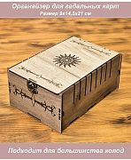 Коробка для хранения гадальных карт Таро, органайзер для Таро. Удобный, стильный ящик для хранения карт, перегородки можно переставлять, создавая ячейки определенной ширины. Шкатулка для карт таро подходит для всех карт шириной до 12,4 см, высотой - до 7,9 см, как классических, так и современных, например таро Уэйта, Ленорман, таро Белых кошек и другие. Ширина отделения - 12.5 см, высота 8 см. Отличный подарок для человека, увлекающегося эзотерикой. Мешочек или футляр для колоды таро позволяет хранить единственный экземпляр, тогда как органайзер позволит аккуратно разложить сразу несколько колод. Можно использовать для хранения игральных карт, карт для MTG и прочих. Сделана из ЛХДФ. Коробка свободно вмещает 5 колод. Так же можно использовать для хранения мелочей, косметики, аксессуаров для волос.