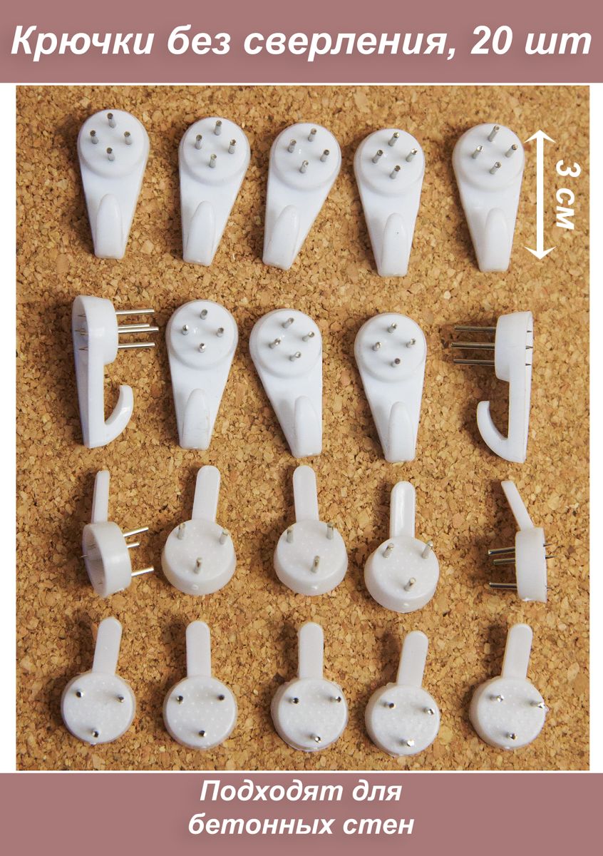 Набор крючков для крепления картин без сверления позволит буквально за 5 минут повесить любимую фотографию на бетонную стену. Главное - забивать крючки-паучки нужно лекгими, не сильными ударами молотка, не пытаясь забить с одного удара.