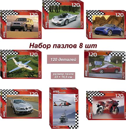Вертолет, Самолет, Мотоцикл, Автомобиль - вот что ждет в наборе пазлов от бренда Step.
