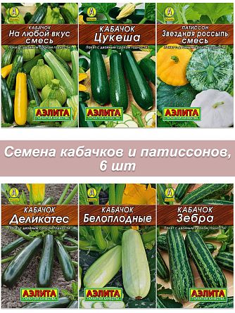 Набор семян популярных, известных сортов кабачков и патиссонов. Все кабачки - кустовые, очень урожайные, белоплодные, цукеша, зебра отлично хранятся до 4 месяцев, а смеси семян кабачков и патиссонов украсят огород необычными формами и цветами. Семена кабачков можно сеять и в открытый грунт, и выращивать рассадой. В средней полосе России отличные результаты показывает выращивание прямым посевом в грунт под нетканое полотно (укладывается сверху на грядку, свободно, без каркаса) - выращенные на под таким укрытием кабачки начинают плодоносить на 2 неделе раньше контрольных кустов. Укрытие необходимо убрать при появлении 3-4 листа (при холодной погоде в начале лета можно оставить на более долгий срок)
