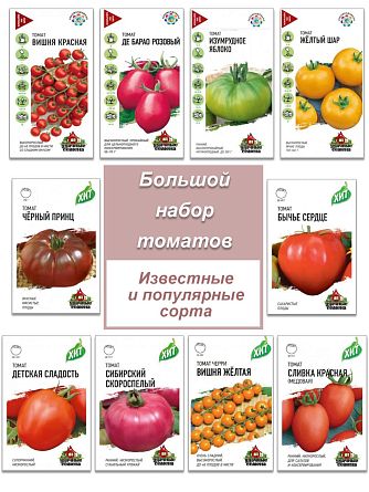 В данном наборе собраный исключительные сорта томата - гордость российской селекции. Идеальная подборка для теплицы - и сладкие маленькие черри, и средние помидорки для консервирования и крупные - для души и рекордов по размерам. Количества семян в наборе позволит пользоваться им несколько лет. Популярные, проверенные временем и садоводом сорта помидор - например, такие как неповторимые бычье сердце и де барао, черри вишня и черный принц. В набор входят только сорта томатов (не гибриды), все помидоры будут необыкновенно вкусные и урожайные и всегда можно собирать семена со своего огорода.