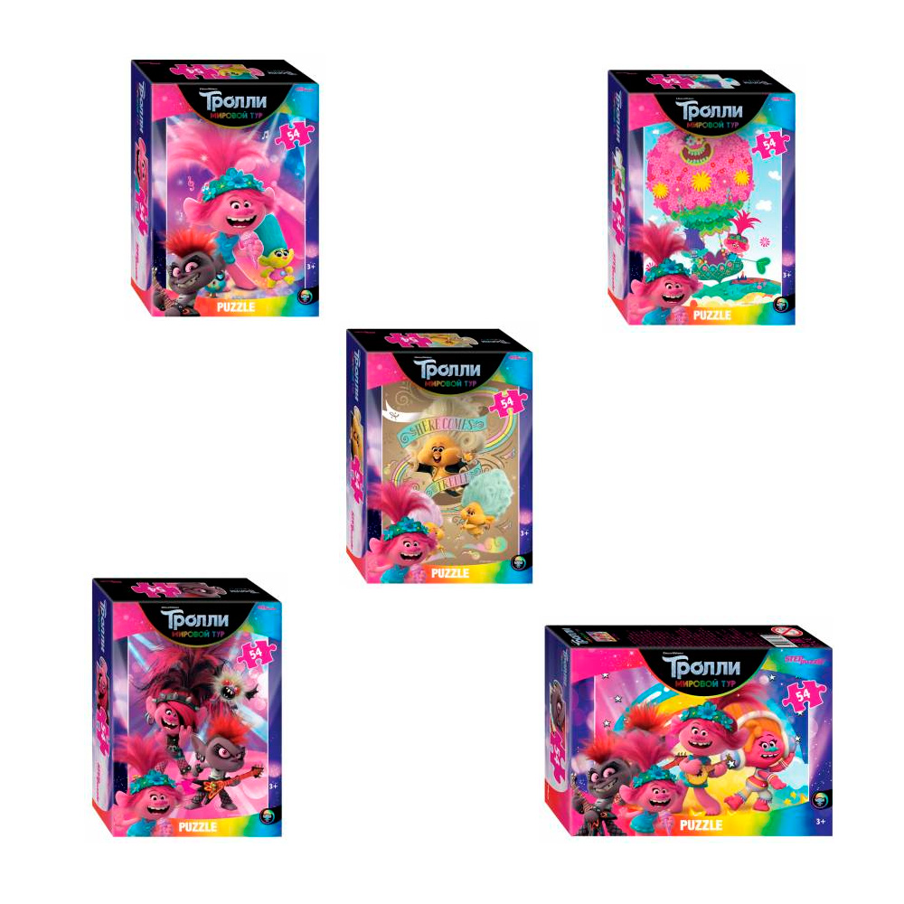 Набор пазлов 5 шт по 54 детали. Trolls - 2