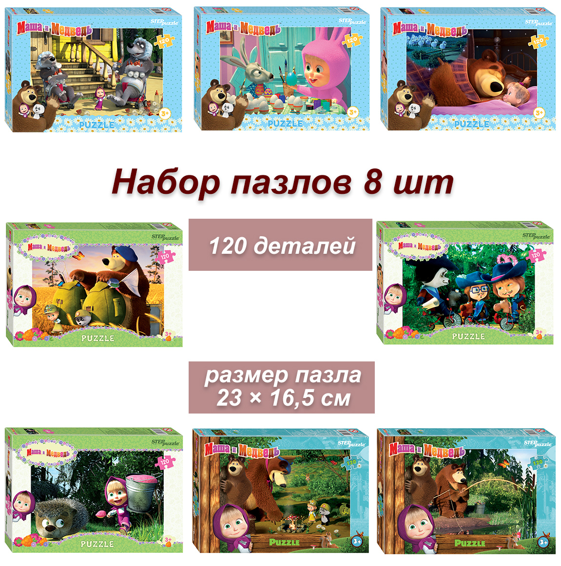 Набор 8 пазлов по 120 деталей Step: Любимые герои