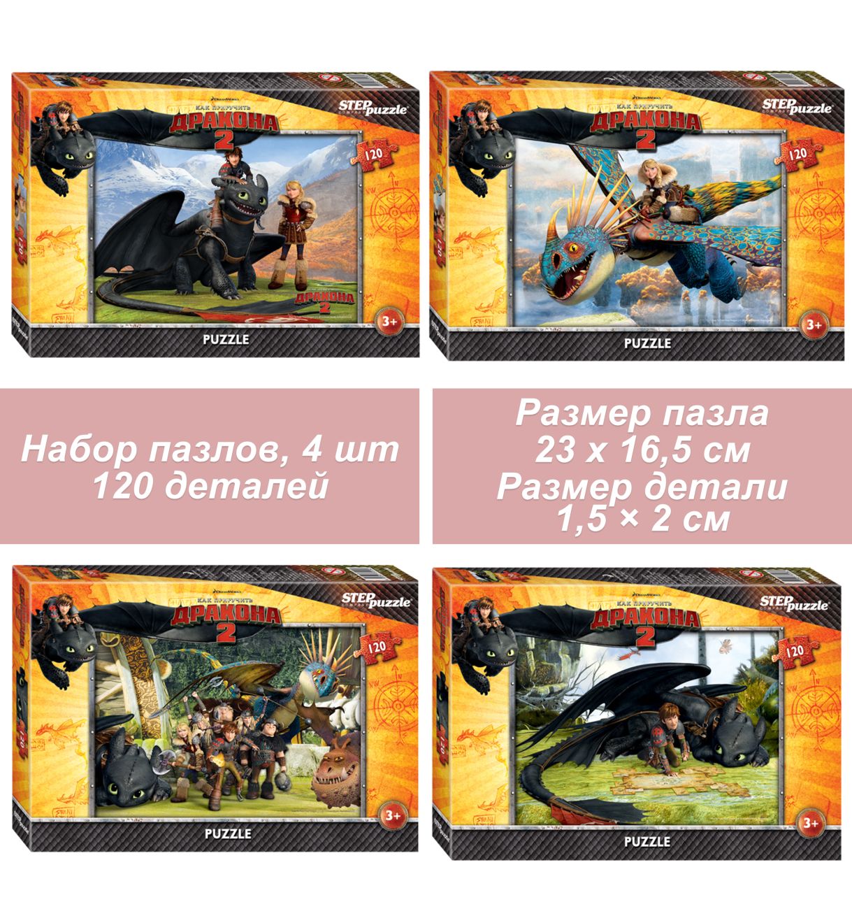 Набор детских пазлов 4 по 120 деталей Step: Драконы