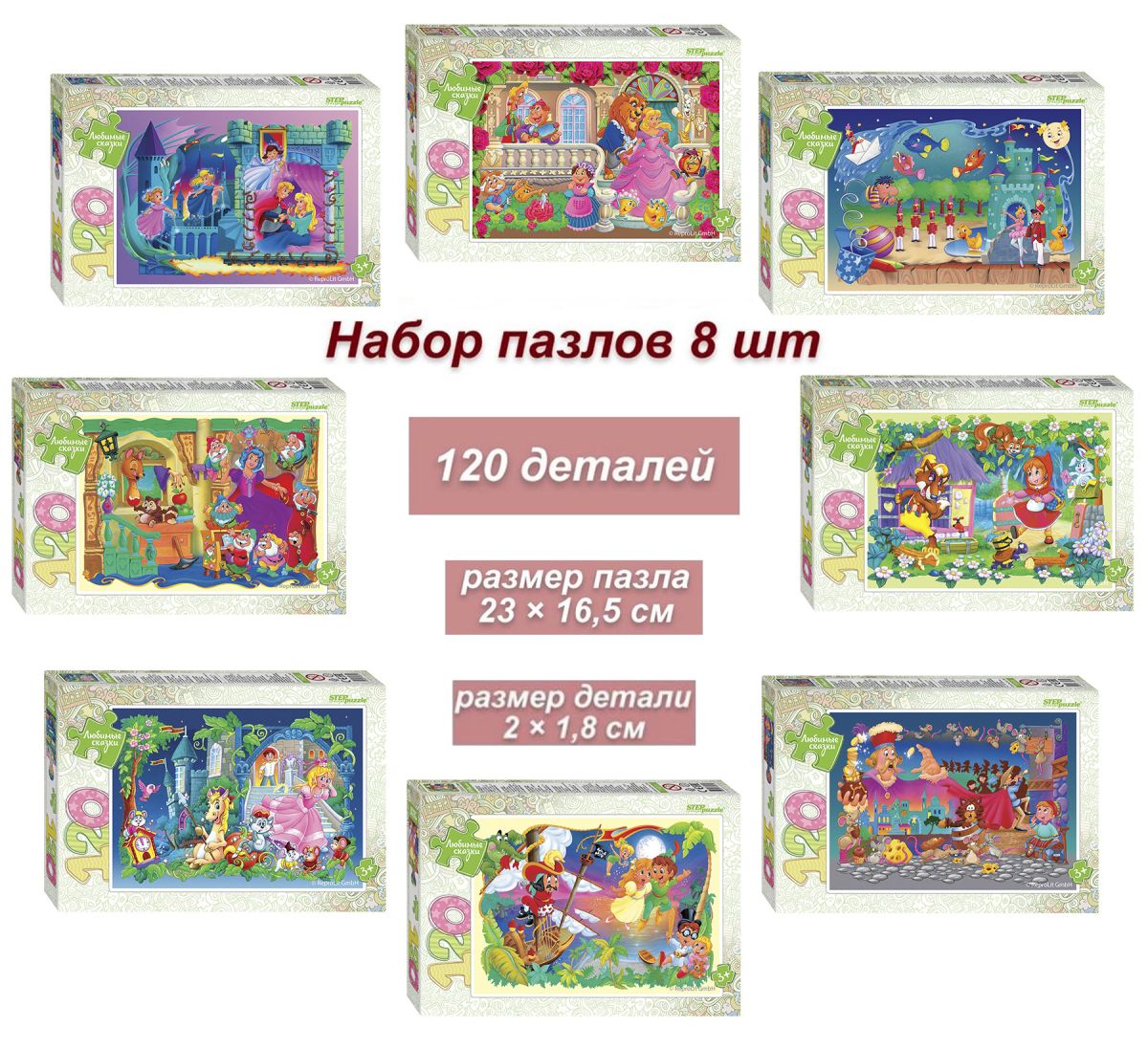 Набор 8 пазлов по 120 деталей Step: Любимые сказки