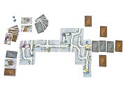 В состав настольной игры Гномы-вредители Дуэль входят: 74 карты (2 двусторонние карты туннелей, 34 карты туннелей, 18 карт действий, 18 карт золотой жилы, 2 карты гномов), 8 двусторонних жетонов гномов, 2 жетона ключа, 2 фигурки гномов, правила игры.