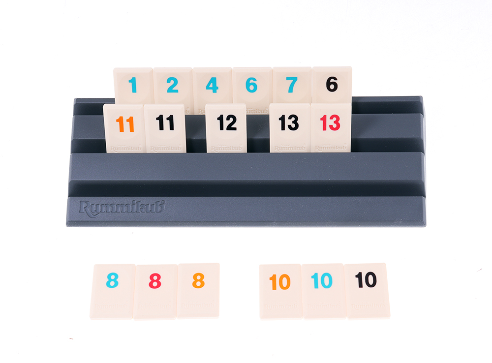 - 106 фишек (8 наборов четырёх цветов с числами от 1 до 13 и 2 джокера)