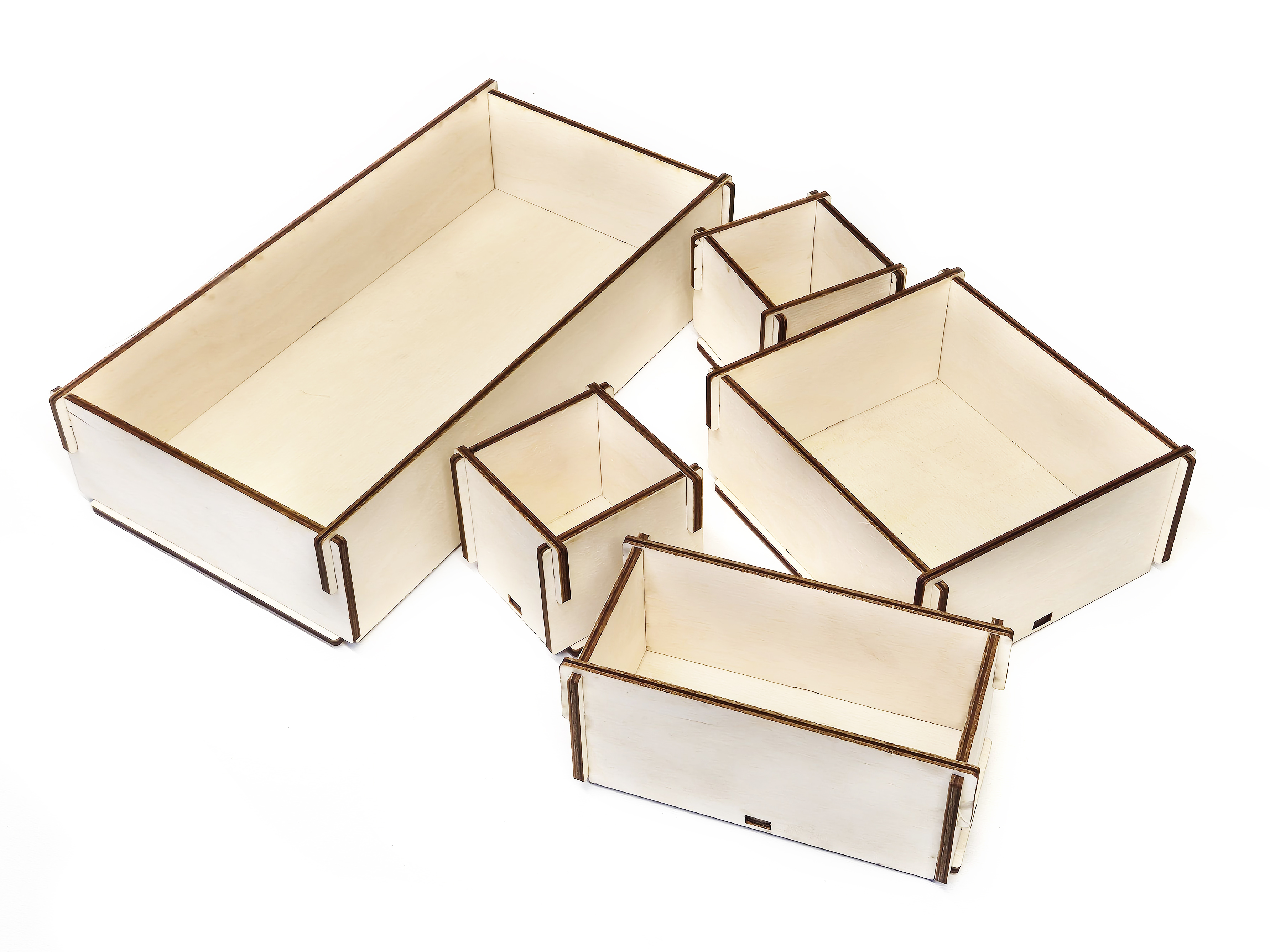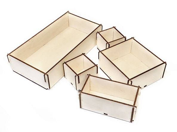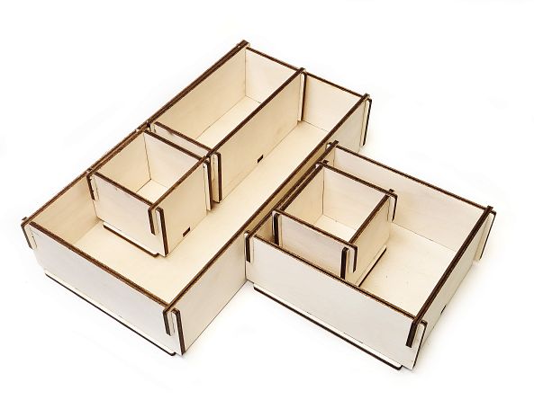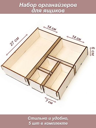 Ящиков для хранения - не бывает много. Очень легко ликвидировать беспорядок на полке, всего лишь поставив набор коробок- у вас сразу появится удобный органайзер для мелочей с разделителями. Поиск чего-то нужного занимает значительное время, но с органайзером все вещи лежат на своих местах. Все коробочки разных размеров, можно легко использовать под любые задачи. Органайзер может использоваться для хранения любых вещей, количество отделений можно регулировать на ваше усмотрение. Универсальная деревянная коробка подойдет практически для всего - отличный вариант для косметики, может украсить собой кухню, а для садоводов - незаменимый помощник для хранения мелочей. ВНИМАНИЕ! Ящики доставляются в разобранном виде, сборка занимает пару минут и не требует специальных инструментов. Пожалуйста, при сборке обязательно следуйте инструкции - соединяйте детали в правильном порядке. После распаковки может чувствоваться запах дерева, через несколько дней запах полностью пропадет. Ящики изготовлены из фанеры, их можно покрасить или покрыть лаком, подобрав цвет под ваш декор.