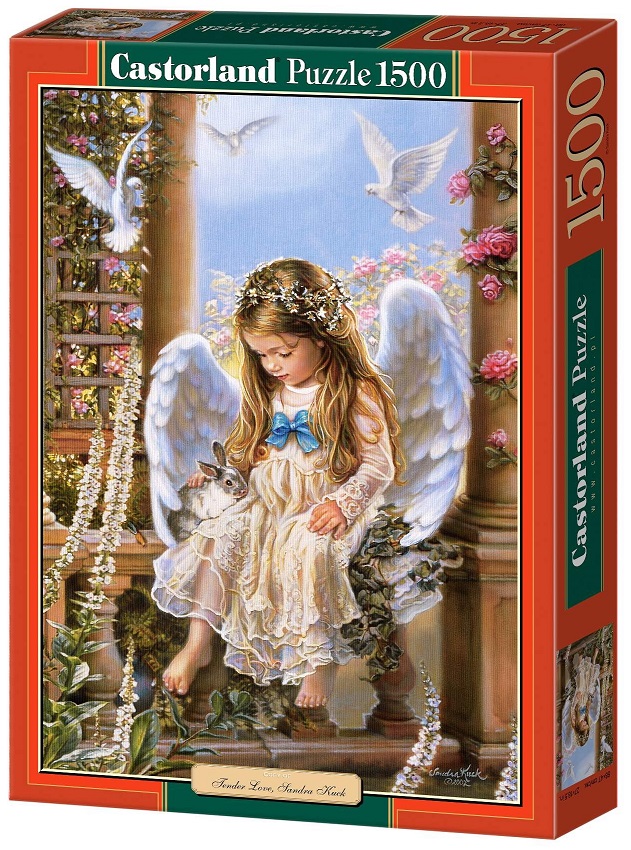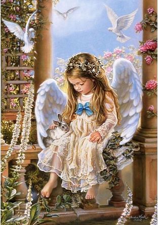 Нежная любовь - это пазл с изображением маленькой девочки-ангелочка, гладящей кролика.