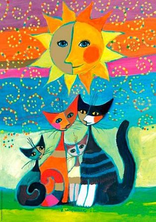 Пазл с изображением четырех кошек под солнцем. Художница Розина Вахтмейстер.