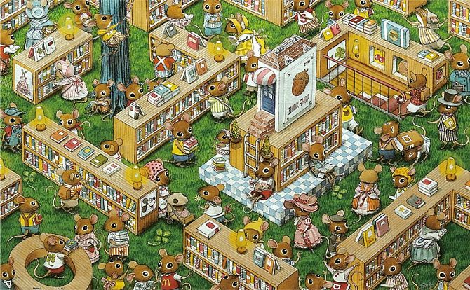 Книжный магазин, заполненный мышами, видимо часть серии "Рай для кошек". :)