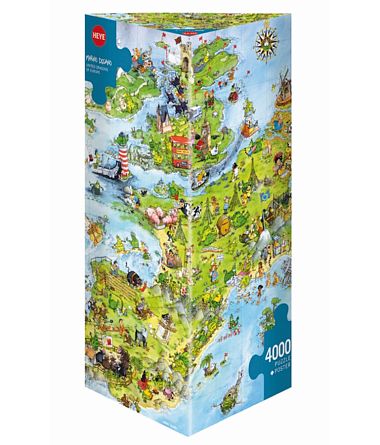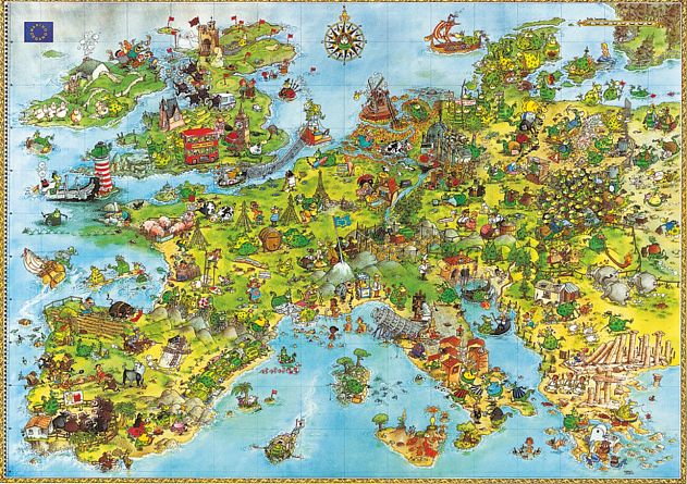 Драконы в Европе - это пазл с изображением в мультяшном стиле, который иллюстрирует фантазию автора на тему того, чтобы было в разных странах Европы, если бы существовали драконы. Автор Марино Дегано.