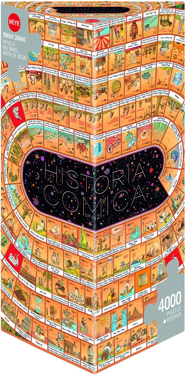 История мира. Опус первый - это пазл с изображением в мультяшном стиле, на котором схематично указано развитие нашего мира, но не все, а всего лишь часть, а если быть точным - вторая часть, т.е. опус второй. Автор Марино Дегано.
