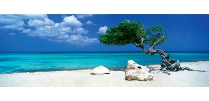 Океан, пляж с белоснежным песком, яркое солнце - великолепная панорама для хорошего настроения.