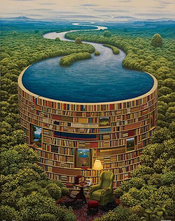 Устроиться с книжечкой в таком необычном кабинете-библиотеке - мечта любого книгомана! Кругом - бескрайние леса, сверху - извилистая речушка, есть возможность посидеть в удобном кресле с высокой спинкой, да и еще и под боком торшер, который светит теплым светом... Соберите из 2000 деталей репродукцию замечательной картины польского художника Яцека Йерки "Библиотека", которая перенесет вас в фантазийный мир этого талантливого мастера кисти.