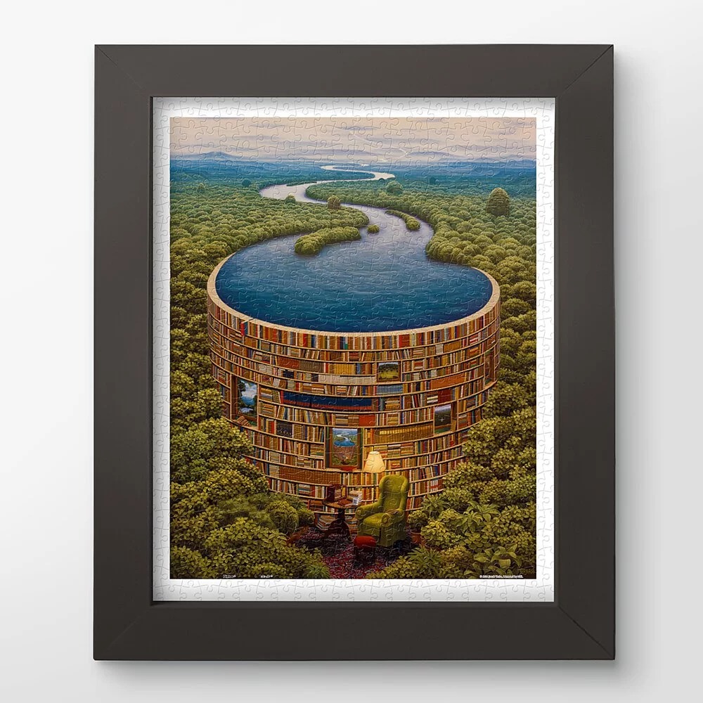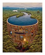 Фантазийный мир польского художника-иллюстратора Яцека Йерки не поддается рациональному объяснению, и этим он особенно прекрасен. Только скажите: где еще библиотека будет напоминать сверху донизу наполненный водой колодец, куда стекаются притоки рек, готовые вот-вот выйти из берегов? Конечно же, на картинах Йерки! Воспользуйтесь отличной возможностью собрать одну из репродукций этого талантливого художника, и вы сможете хотя бы попытаться понять, что именно мастер вложил в её название ("Библиотека").
