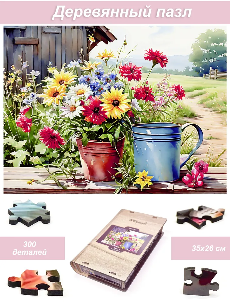 Деревянный фигурный пазл бренда 1001puzzle - уникальная настольная игра, прекрасный подарок для взрослых и для детей. Деревянная головоломка с нестандартной нарезкой состоит из 300 ярких фигурных деталей. Каждый элемент пазла - уникален, что делает сборку еще увлекательнее. Пазлы из дерева отличаются от обычных картонных надежностью и долговечностью. Кроме того, они станут прекрасным украшением интерьера, будет радовать не только в момент сборки, но и после. В нашем ассортименте есть и яркие, веселые пазлы, есть и имитация картин, пейзажи, домашние и дикие животные. Можно подобрать рисунок на любой вкус. Пазл упакован в уникальную коробку - она же служит местом для сборки, а, при желании, вы можете использовать планшет для сборки как рамку, чтобы закрепить картину и повесить ее на стену. Все пазлы мы упаковываем дополнительно в надежную транспортировочную коробку и, очень надеемся, что она поможет пережить нашему товару сложную дорогу к вам.