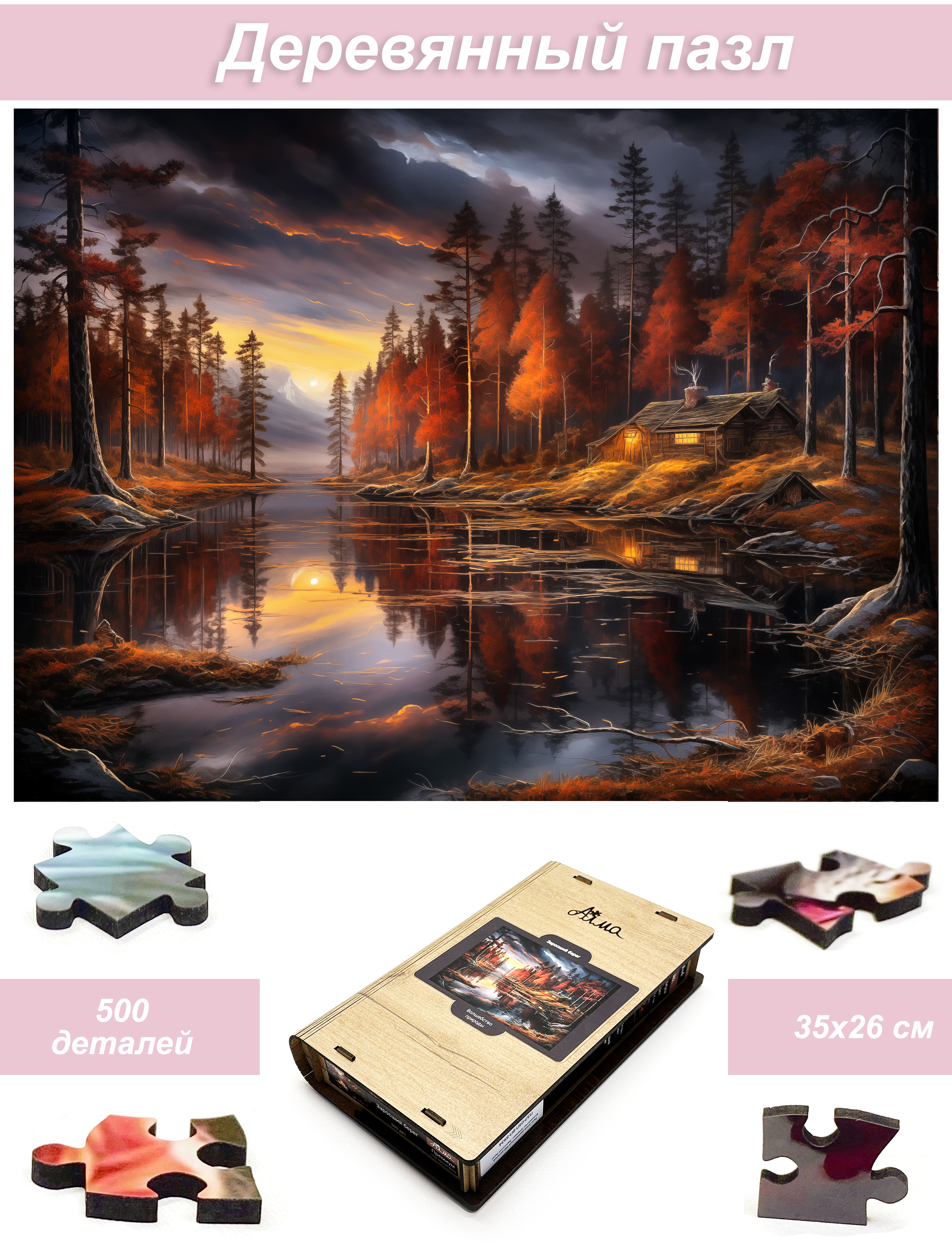 Деревянный фигурный пазл бренда 1001puzzle - уникальная настольная игра, прекрасный подарок для взрослых и для детей. Деревянная головоломка с нестандартной нарезкой состоит из 500 ярких фигурных деталей. Каждый элемент пазла - уникален, что делает сборку еще увлекательнее. Пазлы из дерева отличаются от обычных картонных надежностью и долговечностью. Кроме того, они станут прекрасным украшением интерьера, будет радовать не только в момент сборки, но и после. В нашем ассортименте есть и яркие, веселые пазлы, есть и имитация картин, пейзажи, домашние и дикие животные. Можно подобрать рисунок на любой вкус. Пазл упакован в уникальную коробку - она же служит местом для сборки, а, при желании, вы можете использовать планшет для сборки как рамку, чтобы закрепить картину и повесить ее на стену. Все пазлы мы упаковываем дополнительно в надежную транспортировочную коробку и, очень надеемся, что она поможет пережить нашему товару сложную дорогу к вам.