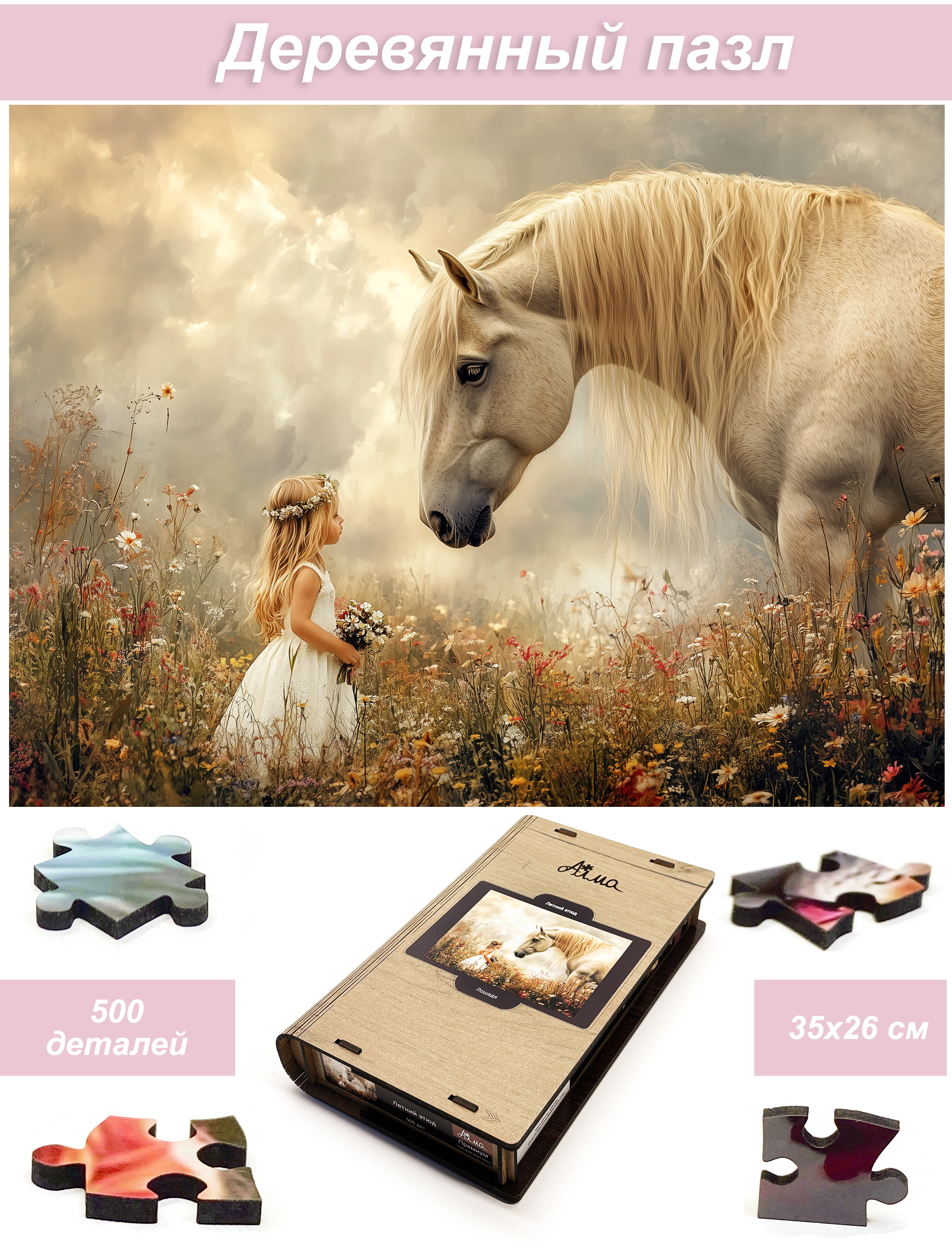 Деревянный фигурный пазл бренда 1001puzzle - уникальная настольная игра, прекрасный подарок для взрослых и для детей. Деревянная головоломка с нестандартной нарезкой состоит из 500 ярких фигурных деталей. Каждый элемент пазла - уникален, что делает сборку еще увлекательнее. Пазлы из дерева отличаются от обычных картонных надежностью и долговечностью. Кроме того, они станут прекрасным украшением интерьера, будет радовать не только в момент сборки, но и после. В нашем ассортименте есть и яркие, веселые пазлы, есть и имитация картин, пейзажи, домашние и дикие животные. Можно подобрать рисунок на любой вкус. Пазл упакован в уникальную коробку - она же служит местом для сборки, а, при желании, вы можете использовать планшет для сборки как рамку, чтобы закрепить картину и повесить ее на стену. Все пазлы мы упаковываем дополнительно в надежную транспортировочную коробку и, очень надеемся, что она поможет пережить нашему товару сложную дорогу к вам.