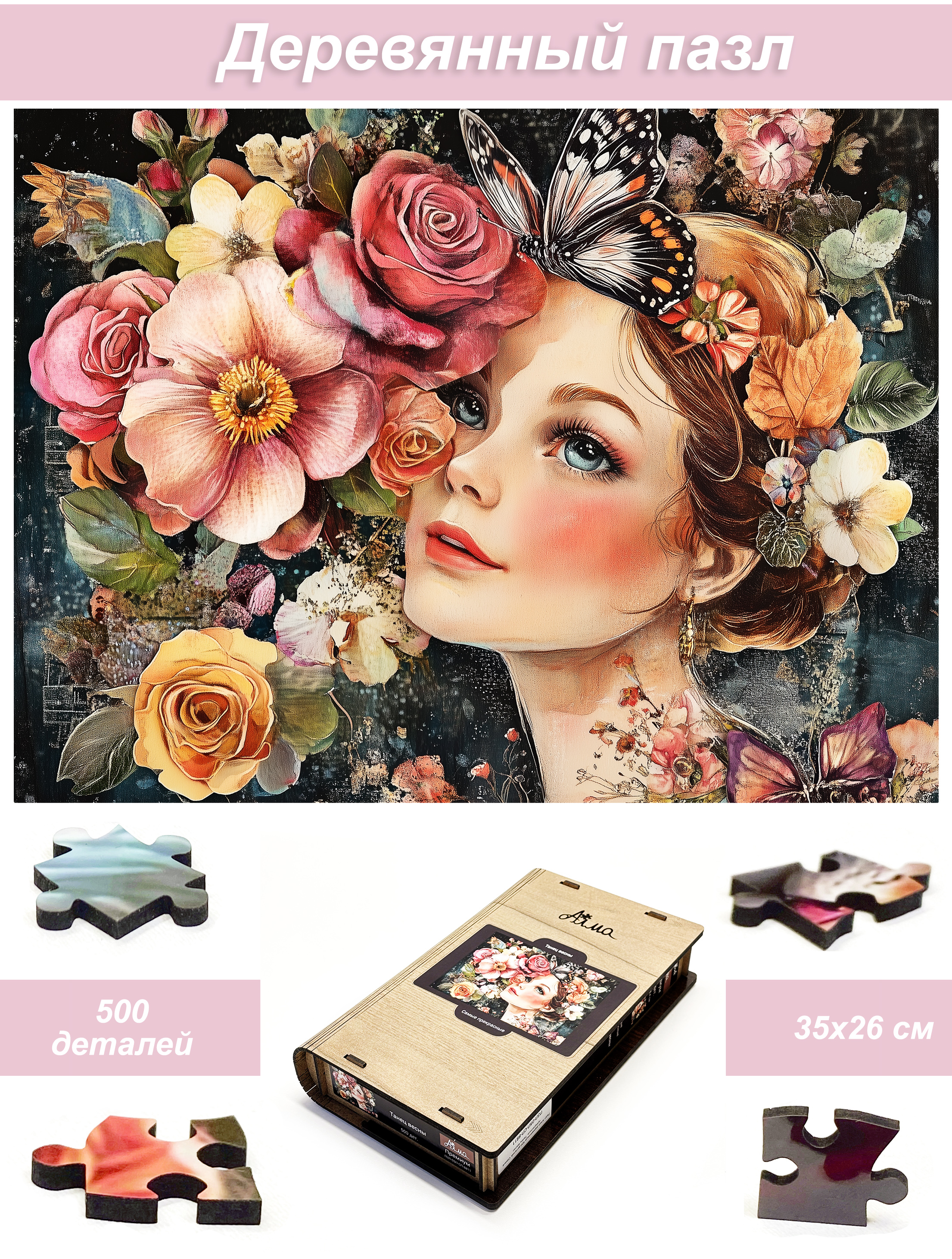 Деревянный фигурный пазл бренда 1001puzzle - уникальная настольная игра, прекрасный подарок для взрослых и для детей. Деревянная головоломка с нестандартной нарезкой состоит из 500 ярких фигурных деталей. Каждый элемент пазла - уникален, что делает сборку еще увлекательнее. Пазлы из дерева отличаются от обычных картонных надежностью и долговечностью. Кроме того, они станут прекрасным украшением интерьера, будет радовать не только в момент сборки, но и после. В нашем ассортименте есть и яркие, веселые пазлы, есть и имитация картин, пейзажи, домашние и дикие животные. Можно подобрать рисунок на любой вкус. Пазл упакован в уникальную коробку - она же служит местом для сборки, а, при желании, вы можете использовать планшет для сборки как рамку, чтобы закрепить картину и повесить ее на стену. Все пазлы мы упаковываем дополнительно в надежную транспортировочную коробку и, очень надеемся, что она поможет пережить нашему товару сложную дорогу к вам.