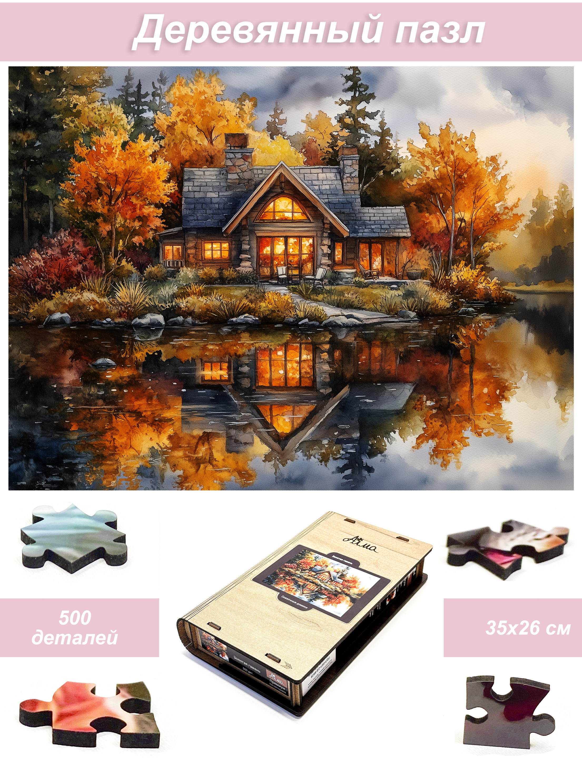 Деревянный фигурный пазл бренда 1001puzzle - уникальная настольная игра, прекрасный подарок для взрослых и для детей. Деревянная головоломка с нестандартной нарезкой состоит из 500 ярких фигурных деталей. Каждый элемент пазла - уникален, что делает сборку еще увлекательнее. Пазлы из дерева отличаются от обычных картонных надежностью и долговечностью. Кроме того, они станут прекрасным украшением интерьера, будет радовать не только в момент сборки, но и после. В нашем ассортименте есть и яркие, веселые пазлы, есть и имитация картин, пейзажи, домашние и дикие животные. Можно подобрать рисунок на любой вкус. Пазл упакован в уникальную коробку - она же служит местом для сборки, а, при желании, вы можете использовать планшет для сборки как рамку, чтобы закрепить картину и повесить ее на стену. Все пазлы мы упаковываем дополнительно в надежную транспортировочную коробку и, очень надеемся, что она поможет пережить нашему товару сложную дорогу к вам.