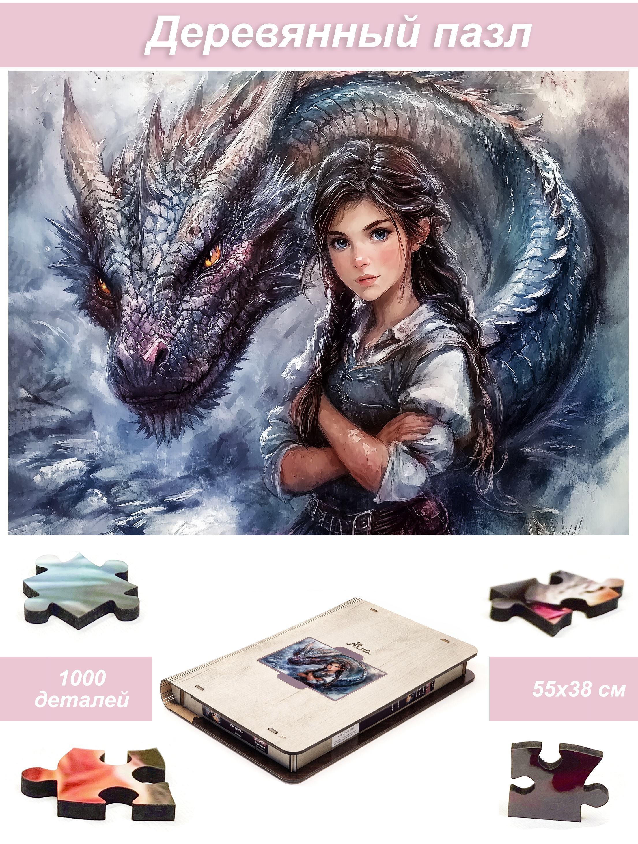 Деревянный фигурный пазл бренда 1001puzzle - уникальная настольная игра, прекрасный подарок для взрослых и для детей. Деревянная головоломка с нестандартной нарезкой состоит из 500 ярких фигурных деталей. Каждый элемент пазла - уникален, что делает сборку еще увлекательнее. Пазлы из дерева отличаются от обычных картонных надежностью и долговечностью. Кроме того, они станут прекрасным украшением интерьера, будет радовать не только в момент сборки, но и после. В нашем ассортименте есть и яркие, веселые пазлы, есть и имитация картин, пейзажи, домашние и дикие животные. Можно подобрать рисунок на любой вкус. Пазл упакован в уникальную коробку - она же служит местом для сборки, а, при желании, вы можете использовать планшет для сборки как рамку, чтобы закрепить картину и повесить ее на стену. Все пазлы мы упаковываем дополнительно в надежную транспортировочную коробку и, очень надеемся, что она поможет пережить нашему товару сложную дорогу к вам.