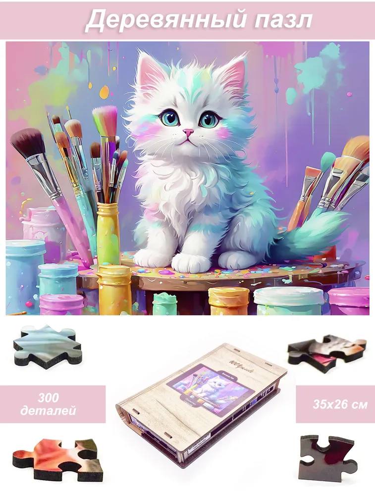 Деревянный фигурный пазл бренда 1001puzzle - уникальная настольная игра, прекрасный подарок для взрослых и для детей. Деревянная головоломка с нестандартной нарезкой состоит из 300 ярких фигурных деталей. Каждый элемент пазла - уникален, что делает сборку еще увлекательнее. Пазлы из дерева отличаются от обычных картонных надежностью и долговечностью. Кроме того, они станут прекрасным украшением интерьера, будет радовать не только в момент сборки, но и после. В нашем ассортименте есть и яркие, веселые пазлы, есть и имитация картин, пейзажи, домашние и дикие животные. Можно подобрать рисунок на любой вкус. Пазл упакован в уникальную коробку - она же служит местом для сборки, а, при желании, вы можете использовать планшет для сборки как рамку, чтобы закрепить картину и повесить ее на стену. Все пазлы мы упаковываем дополнительно в надежную транспортировочную коробку и, очень надеемся, что она поможет пережить нашему товару сложную дорогу к вам.