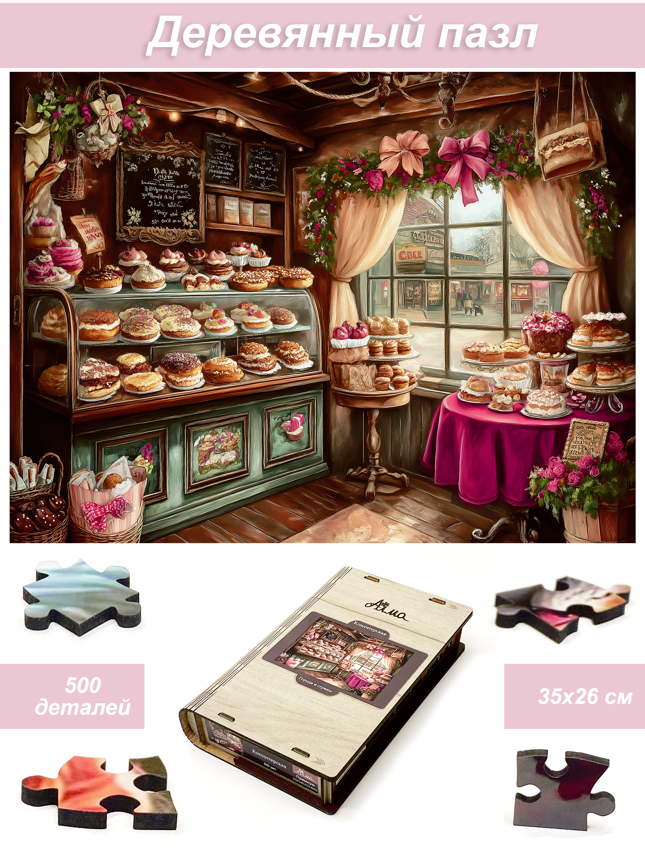 Деревянный фигурный пазл бренда 1001puzzle - уникальная настольная игра, прекрасный подарок для взрослых и для детей. Деревянная головоломка с нестандартной нарезкой состоит из 500 ярких фигурных деталей. Каждый элемент пазла - уникален, что делает сборку еще увлекательнее. Пазлы из дерева отличаются от обычных картонных надежностью и долговечностью. Кроме того, они станут прекрасным украшением интерьера, будет радовать не только в момент сборки, но и после. В нашем ассортименте есть и яркие, веселые пазлы, есть и имитация картин, пейзажи, домашние и дикие животные. Можно подобрать рисунок на любой вкус. Пазл упакован в уникальную коробку - она же служит местом для сборки, а, при желании, вы можете использовать планшет для сборки как рамку, чтобы закрепить картину и повесить ее на стену. Все пазлы мы упаковываем дополнительно в надежную транспортировочную коробку и, очень надеемся, что она поможет пережить нашему товару сложную дорогу к вам.