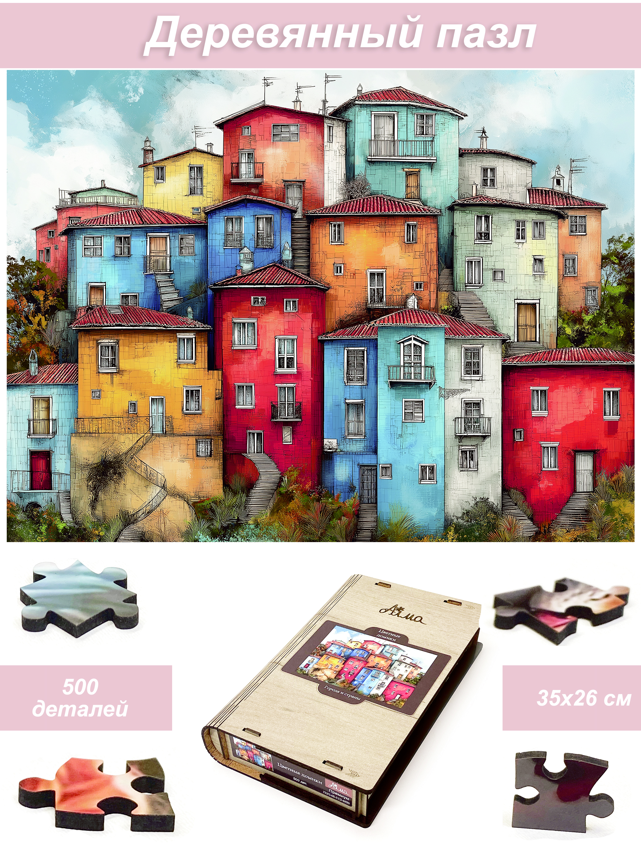 Деревянный фигурный пазл бренда 1001puzzle - уникальная настольная игра, прекрасный подарок для взрослых и для детей. Деревянная головоломка с нестандартной нарезкой состоит из 500 ярких фигурных деталей. Каждый элемент пазла - уникален, что делает сборку еще увлекательнее. Пазлы из дерева отличаются от обычных картонных надежностью и долговечностью. Кроме того, они станут прекрасным украшением интерьера, будет радовать не только в момент сборки, но и после. В нашем ассортименте есть и яркие, веселые пазлы, есть и имитация картин, пейзажи, домашние и дикие животные. Можно подобрать рисунок на любой вкус. Пазл упакован в уникальную коробку - она же служит местом для сборки, а, при желании, вы можете использовать планшет для сборки как рамку, чтобы закрепить картину и повесить ее на стену. Все пазлы мы упаковываем дополнительно в надежную транспортировочную коробку и, очень надеемся, что она поможет пережить нашему товару сложную дорогу к вам.