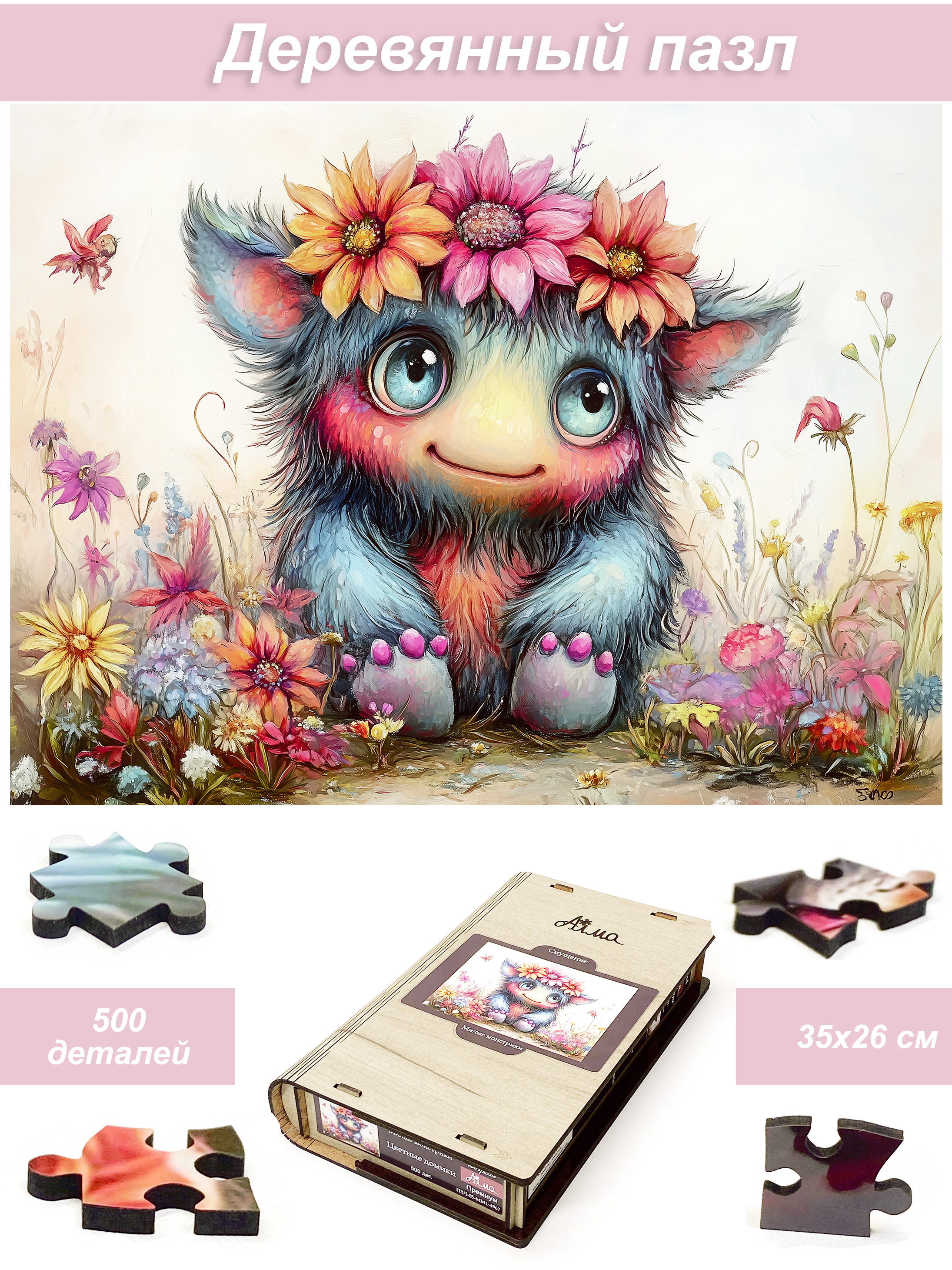Деревянный фигурный пазл бренда 1001puzzle - уникальная настольная игра, прекрасный подарок для взрослых и для детей. Деревянная головоломка с нестандартной нарезкой состоит из 500 ярких фигурных деталей. Каждый элемент пазла - уникален, что делает сборку еще увлекательнее. Пазлы из дерева отличаются от обычных картонных надежностью и долговечностью. Кроме того, они станут прекрасным украшением интерьера, будет радовать не только в момент сборки, но и после. В нашем ассортименте есть и яркие, веселые пазлы, есть и имитация картин, пейзажи, домашние и дикие животные. Можно подобрать рисунок на любой вкус. Пазл упакован в уникальную коробку - она же служит местом для сборки, а, при желании, вы можете использовать планшет для сборки как рамку, чтобы закрепить картину и повесить ее на стену. Все пазлы мы упаковываем дополнительно в надежную транспортировочную коробку и, очень надеемся, что она поможет пережить нашему товару сложную дорогу к вам.