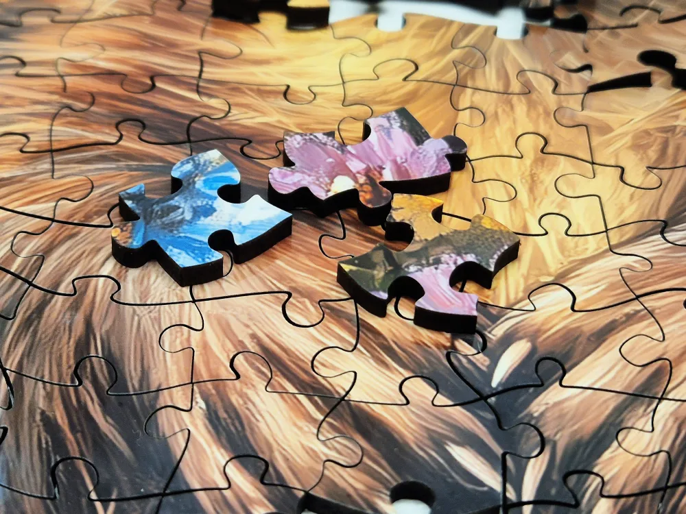 Деревянный фигурный пазл бренда 1001puzzle - уникальная настольная игра, прекрасный подарок для взрослых и для детей. Деревянная головоломка с нестандартной нарезкой состоит из 500 ярких фигурных деталей. Каждый элемент пазла - уникален, что делает сборку еще увлекательнее. Пазлы из дерева отличаются от обычных картонных надежностью и долговечностью. Кроме того, они станут прекрасным украшением интерьера, будет радовать не только в момент сборки, но и после. В нашем ассортименте есть и яркие, веселые пазлы, есть и имитация картин, пейзажи, домашние и дикие животные. Можно подобрать рисунок на любой вкус. Пазл упакован в уникальную коробку - она же служит местом для сборки, а, при желании, вы можете использовать планшет для сборки как рамку, чтобы закрепить картину и повесить ее на стену. Все пазлы мы упаковываем дополнительно в надежную транспортировочную коробку и, очень надеемся, что она поможет пережить нашему товару сложную дорогу к вам.