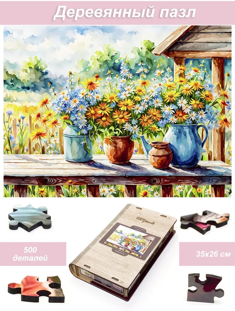 Деревянный фигурный пазл бренда 1001puzzle - уникальная настольная игра, прекрасный подарок для взрослых и для детей. Деревянная головоломка с нестандартной нарезкой состоит из 500 ярких фигурных деталей. Каждый элемент пазла - уникален, что делает сборку еще увлекательнее. Пазлы из дерева отличаются от обычных картонных надежностью и долговечностью. Кроме того, они станут прекрасным украшением интерьера, будет радовать не только в момент сборки, но и после. В нашем ассортименте есть и яркие, веселые пазлы, есть и имитация картин, пейзажи, домашние и дикие животные. Можно подобрать рисунок на любой вкус. Пазл упакован в уникальную коробку - она же служит местом для сборки, а, при желании, вы можете использовать планшет для сборки как рамку, чтобы закрепить картину и повесить ее на стену. Все пазлы мы упаковываем дополнительно в надежную транспортировочную коробку и, очень надеемся, что она поможет пережить нашему товару сложную дорогу к вам.