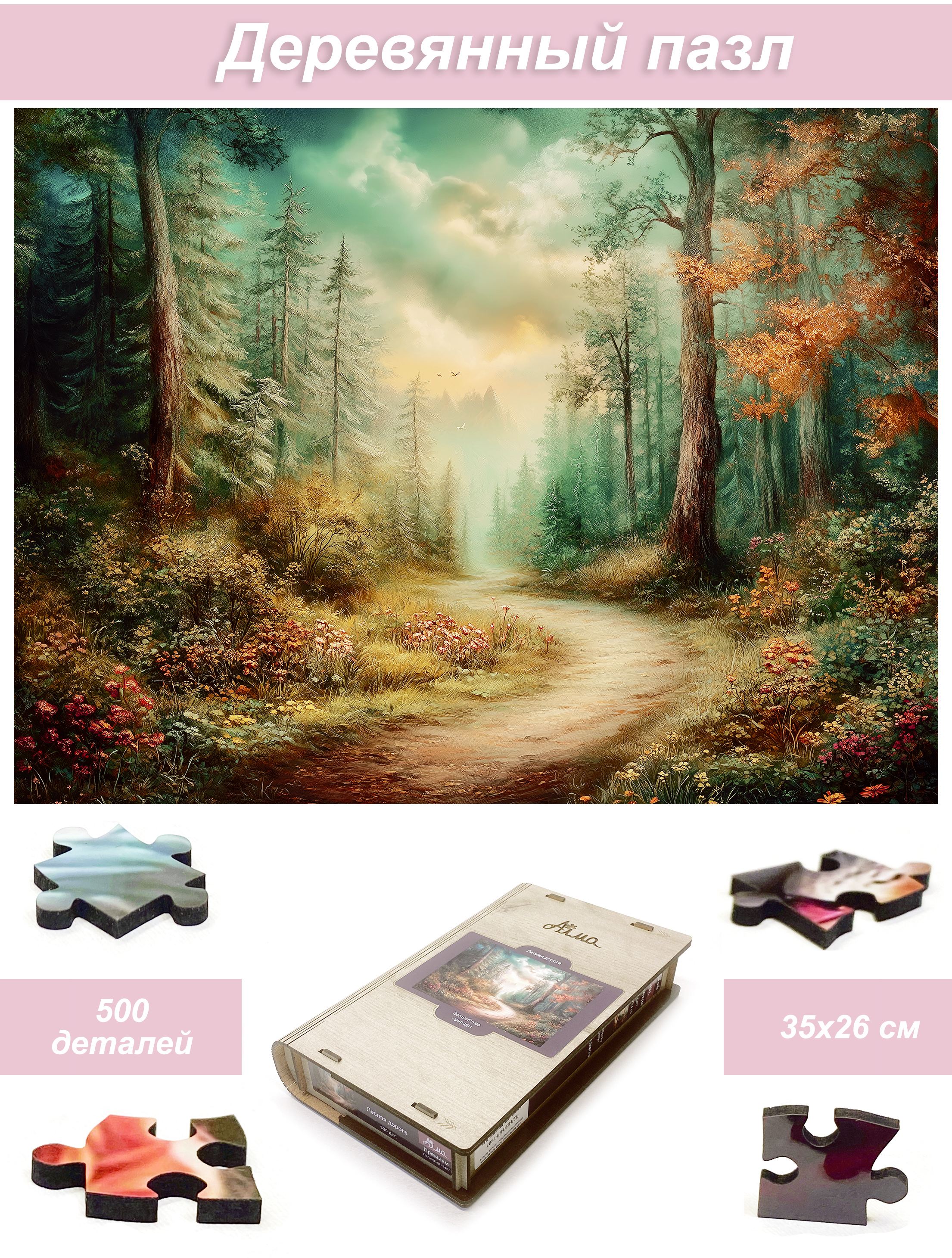 Деревянный фигурный пазл бренда 1001puzzle - уникальная настольная игра, прекрасный подарок для взрослых и для детей. Деревянная головоломка с нестандартной нарезкой состоит из 500 ярких фигурных деталей. Каждый элемент пазла - уникален, что делает сборку еще увлекательнее. Пазлы из дерева отличаются от обычных картонных надежностью и долговечностью. Кроме того, они станут прекрасным украшением интерьера, будет радовать не только в момент сборки, но и после. В нашем ассортименте есть и яркие, веселые пазлы, есть и имитация картин, пейзажи, домашние и дикие животные. Можно подобрать рисунок на любой вкус. Пазл упакован в уникальную коробку - она же служит местом для сборки, а, при желании, вы можете использовать планшет для сборки как рамку, чтобы закрепить картину и повесить ее на стену. Все пазлы мы упаковываем дополнительно в надежную транспортировочную коробку и, очень надеемся, что она поможет пережить нашему товару сложную дорогу к вам.