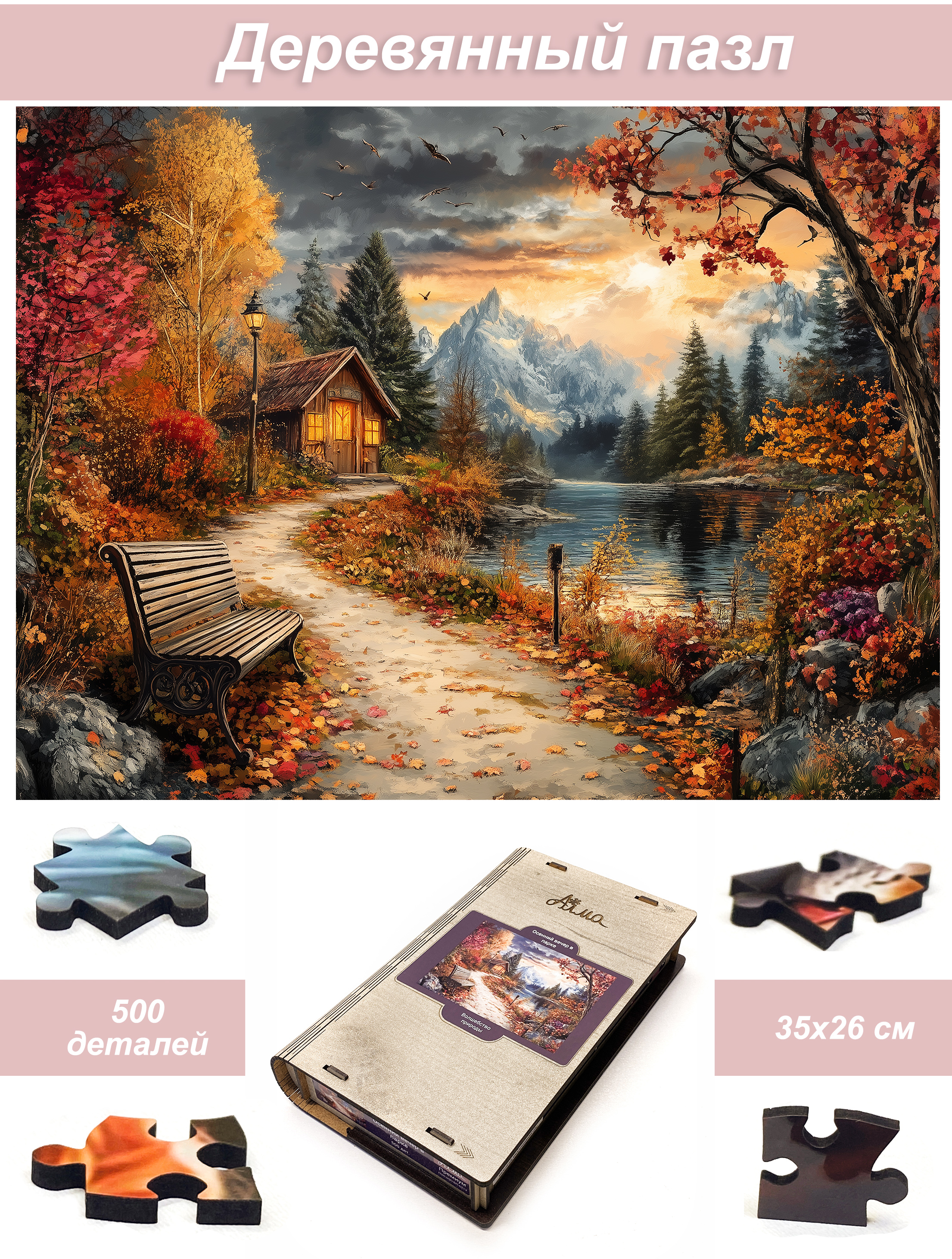 Деревянный фигурный пазл бренда 1001puzzle - уникальная настольная игра, прекрасный подарок для взрослых и для детей. Деревянная головоломка с нестандартной нарезкой состоит из 500 ярких фигурных деталей. Каждый элемент пазла - уникален, что делает сборку еще увлекательнее. Пазлы из дерева отличаются от обычных картонных надежностью и долговечностью. Кроме того, они станут прекрасным украшением интерьера, будет радовать не только в момент сборки, но и после. В нашем ассортименте есть и яркие, веселые пазлы, есть и имитация картин, пейзажи, домашние и дикие животные. Можно подобрать рисунок на любой вкус. Пазл упакован в уникальную коробку - она же служит местом для сборки, а, при желании, вы можете использовать планшет для сборки как рамку, чтобы закрепить картину и повесить ее на стену. Все пазлы мы упаковываем дополнительно в надежную транспортировочную коробку и, очень надеемся, что она поможет пережить нашему товару сложную дорогу к вам.