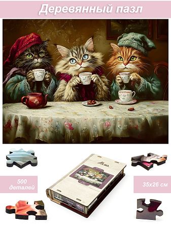 Деревянный фигурный пазл бренда 1001puzzle - уникальная настольная игра, прекрасный подарок для взрослых и для детей. Деревянная головоломка с нестандартной нарезкой состоит из 500 ярких фигурных деталей. Каждый элемент пазла - уникален, что делает сборку еще увлекательнее. Пазлы из дерева отличаются от обычных картонных надежностью и долговечностью. Кроме того, они станут прекрасным украшением интерьера, будет радовать не только в момент сборки, но и после. В нашем ассортименте есть и яркие, веселые пазлы, есть и имитация картин, пейзажи, домашние и дикие животные. Можно подобрать рисунок на любой вкус. Пазл упакован в уникальную коробку - она же служит местом для сборки, а, при желании, вы можете использовать планшет для сборки как рамку, чтобы закрепить картину и повесить ее на стену. Все пазлы мы упаковываем дополнительно в надежную транспортировочную коробку и, очень надеемся, что она поможет пережить нашему товару сложную дорогу к вам.