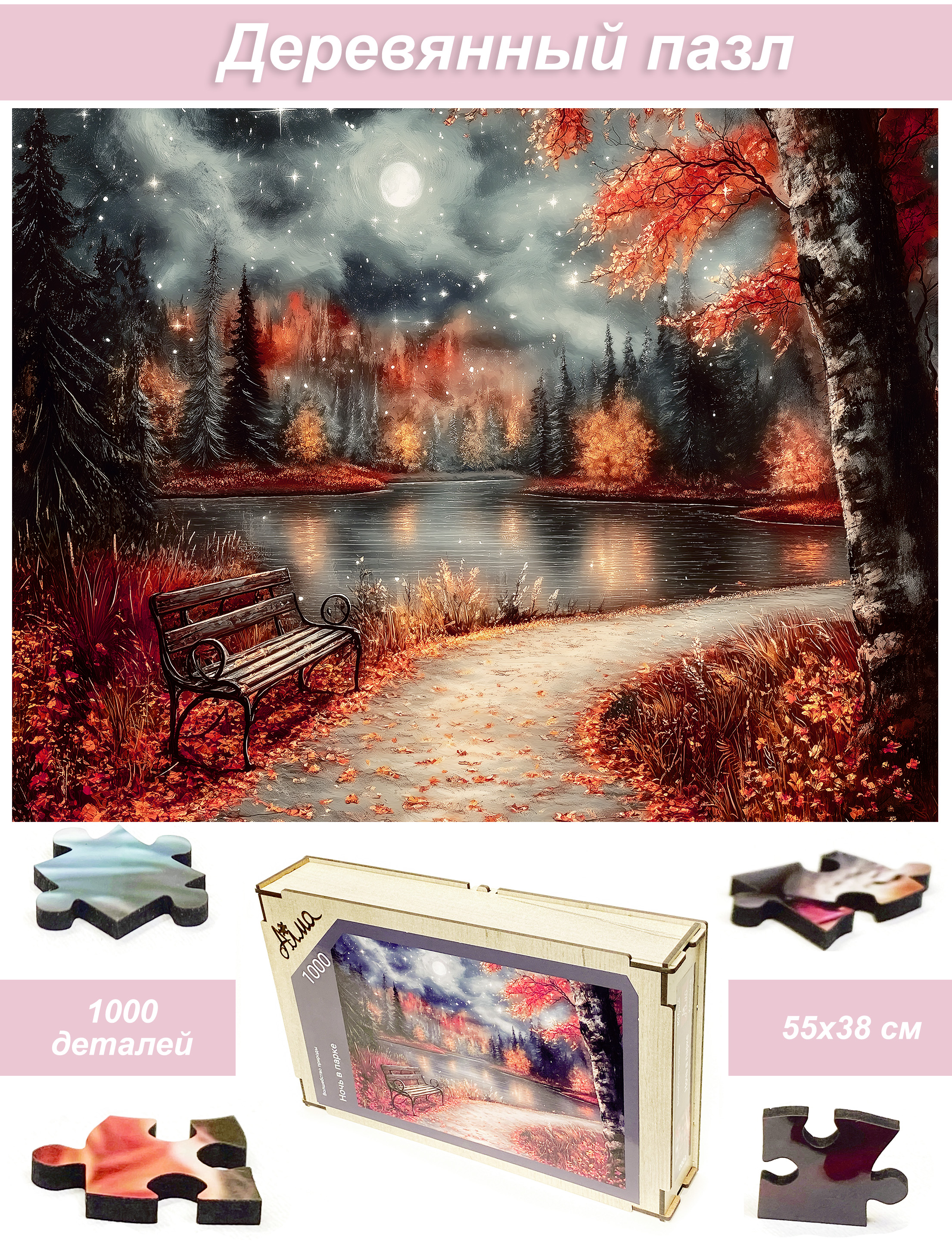 Деревянный фигурный пазл бренда 1001puzzle - уникальная настольная игра, прекрасный подарок для взрослых и для детей. Деревянная головоломка с нестандартной нарезкой состоит из 1000 ярких фигурных деталей. Каждый элемент пазла - уникален, что делает сборку еще увлекательнее. Пазлы из дерева отличаются от обычных картонных надежностью и долговечностью. Кроме того, они станут прекрасным украшением интерьера, будет радовать не только в момент сборки, но и после. В нашем ассортименте есть и яркие, веселые пазлы, есть и имитация картин, пейзажи, домашние и дикие животные. Можно подобрать рисунок на любой вкус.