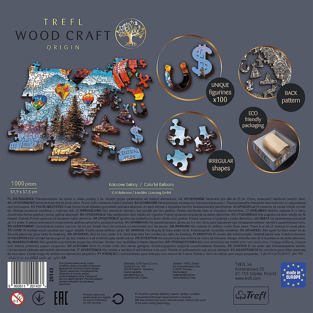 Деревянный пазл от бренда Trefl - это гибрид классической нарезки деталей и замысловатых фигур в форме животных, предметов и украшений.