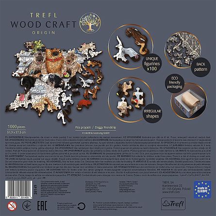 Деревянный пазл от бренда Trefl - это гибрид классической нарезки деталей и замысловатых фигур в форме животных, предметов и украшений.