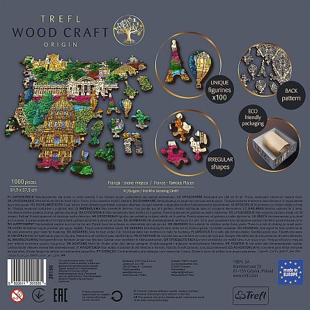 Деревянный пазл от бренда Trefl - это гибрид классической нарезки деталей и замысловатых фигур в форме животных, предметов и украшений.