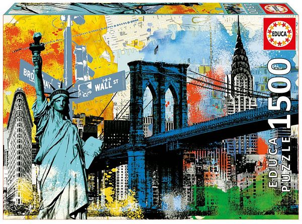 Пазл Educa 1500 деталей: Символы Нью-Йорка (17120). Размер готового изображения - 85х60 см.