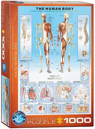 Пазл-плакат, демонстрирующий строение человеческого тела. Изучаем и запоминаем мышцы, кости, внутренние органы. Отличный подарок и для школьника, и для студента.