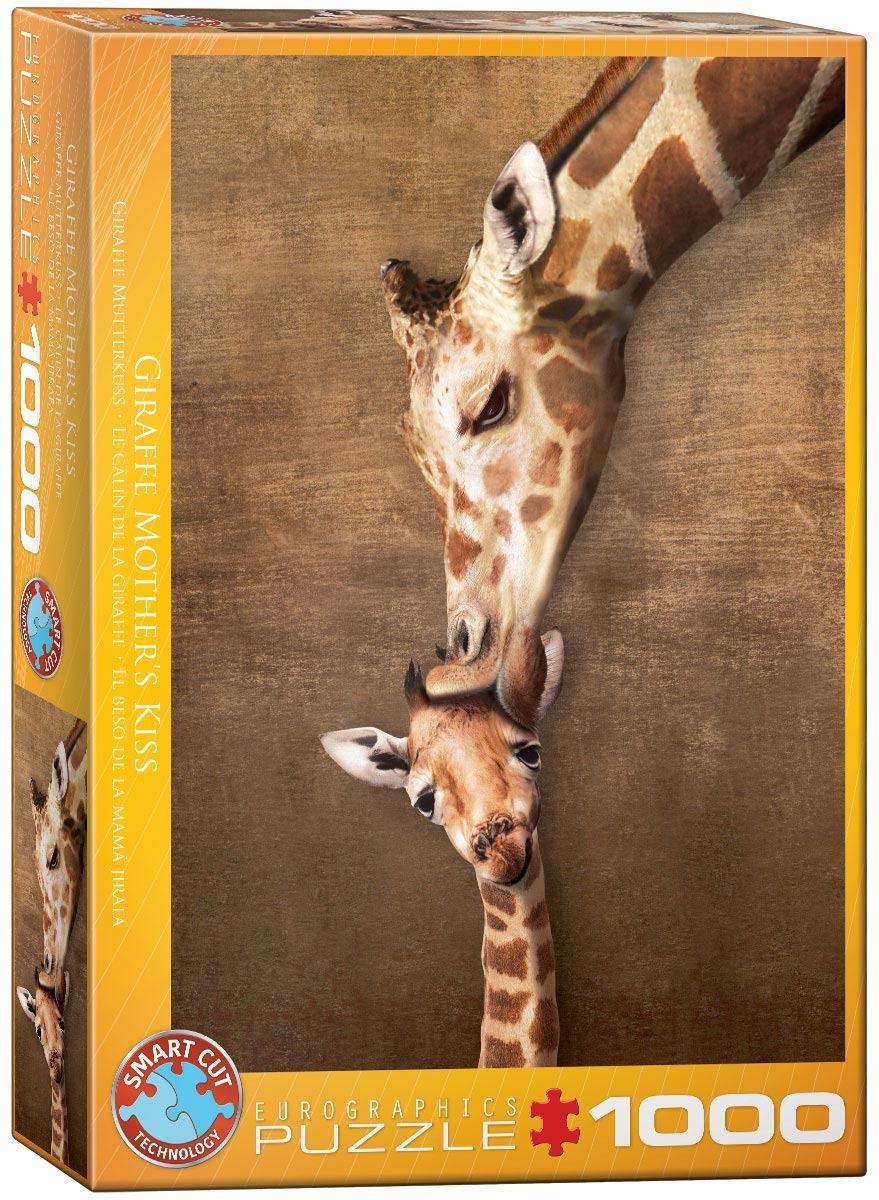 Очаровательная мама-жираф целует маленького жирафчика. Очень мило и нежно. Все любители животных и дикой природы будут в восторге.