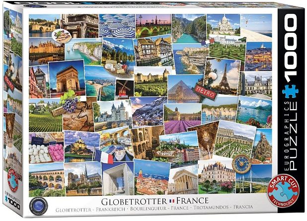 Коллаж из открыток с достопримечательностями Франции. Яркие, красочные замки, поля с лавандой, бегущие лошади, мосты - в этом вся Франция.