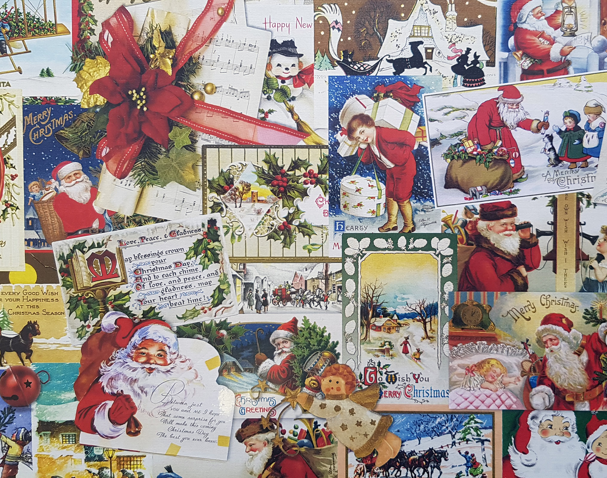 Рождество, новый год - и коллаж из винтажных открыток будет радовать вас в любой сезон. Милое очарование старины, тонировка, много елок, украшений и снега.