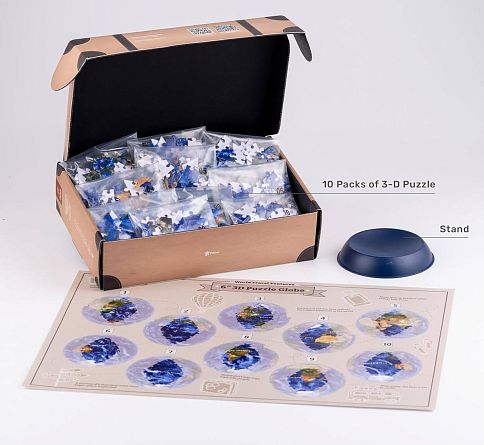 Пазл-шар - из прочного пластика, детали отлично крепятся друг к другу! Вся конструкция прекрасно держится на специальной подставке, которая входит в набор. Этот пазл подойдет детям и взрослым, порадует тех, кто немного подустал от обычных плоских мозаик, но тем не менее любит их собирать.