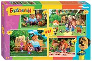 Развивающий набор пазлов 4в1 "Барбоскины" содержит 4 пазла с разным количеством элементов. Развивает воображение и фантазию ребёнка, восприятие цвета и формы. Совершенствует скоординированную работу рук. Тренирует пространственное мышление, глазомер. Учит различать формы деталей. Пазлы из наборов 4 в 1 можно собирать без опоры на картинку, с обратной стороны. Метод «слепой сборки» возможен благодаря уникальному штампу. Каждая деталь имеет свою форму и встает только на свое место. Состав игры: 4 пазла с разным количеством элементов; пазл 20 элементов (крупные детали: ~ 4,5 х 4,5 см.); пазл 24 элемента (крупные детали: ~ 4 х 5 см.) ; пазл 30 элементов (крупные детали: ~ 4 х 5 см.); пазл 40 элементов (крупные детали: ~ 4 х 5 см.).
